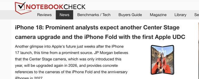 iPhone 18 前瞻:分析师预测中心摄像头再升级,iPhone Fold 将首发苹果UDC技术