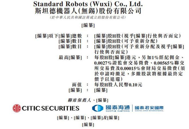 新股消息 | 斯坦德机器人递表港交所