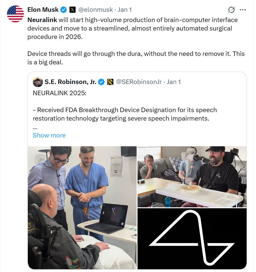 新年伊始,科技圈被埃隆·马斯克的一则声明再次引爆:Neuralink宣布正式开启"全自动穿刺"手术的量产化进程,并承诺将手术成本压至极低的价格区 间。 那些曾经只能在科幻电影中见到的机械臂,可能即将以微米级的精度,模式化的向人类大脑植入电极。似乎一夜之间,我们离那个赛博朋克的世界又近了 一步。 资本市场和大众媒体都在为"瘫痪者重新站立"或"盲人重获光明"的医疗神话而狂欢。但在我们这些物联网从业者的眼中,这则新闻的底层逻辑截然不同。 我们看到的不是医疗康复的温情叙事,而是一场关于人机"带宽"的变化。 物联网在过去二十年里连接了万物,从巨大的工业锅炉到微小的温湿度传感器,却始终未能高效连接这个星球上最复杂的智能终端——人。 长期以来,人类被隔离在数字闭环之外,依靠低效的键盘、触摸屏或语音指令与机器沟通。这种信息传输速率的不对等,成为了制约工业数字化转型的瓶 颈。 因此,脑机接口(BCI)绝不仅仅是一种新型医疗设备,它是物联网期待已久的"高带宽调制解调器"。 伴随着脑机接口的发展,有可能会开启一个新的想象空间:脑机物联网,也可以称为,意图物联网。 在这个阶段,我们有必要跳出智慧医疗的视野以及C端元宇宙游戏的泡沫,将 ...
