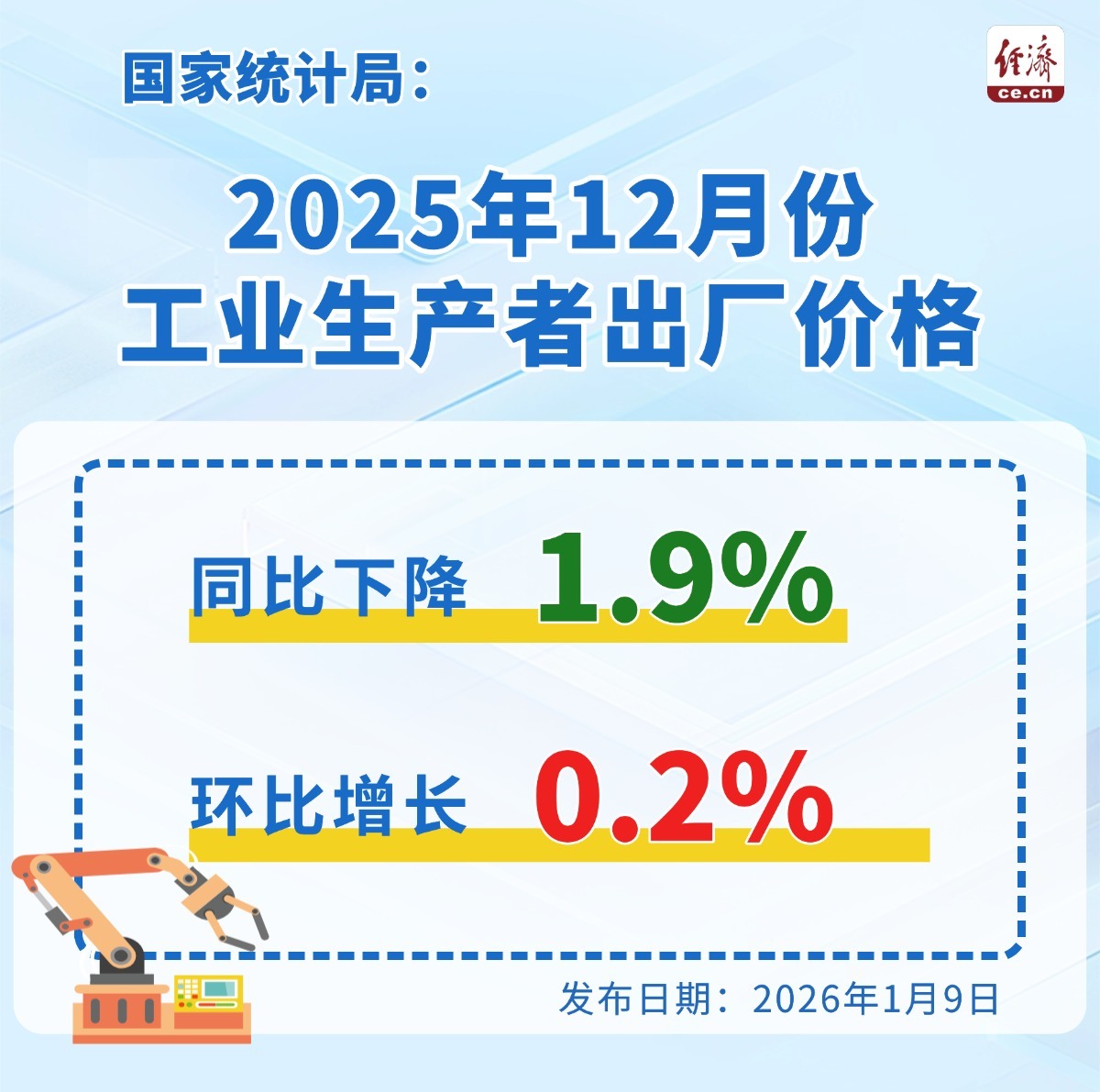 国家统计局:2025年12月份工业生产者出厂价格同比降幅收窄,环比涨幅扩大