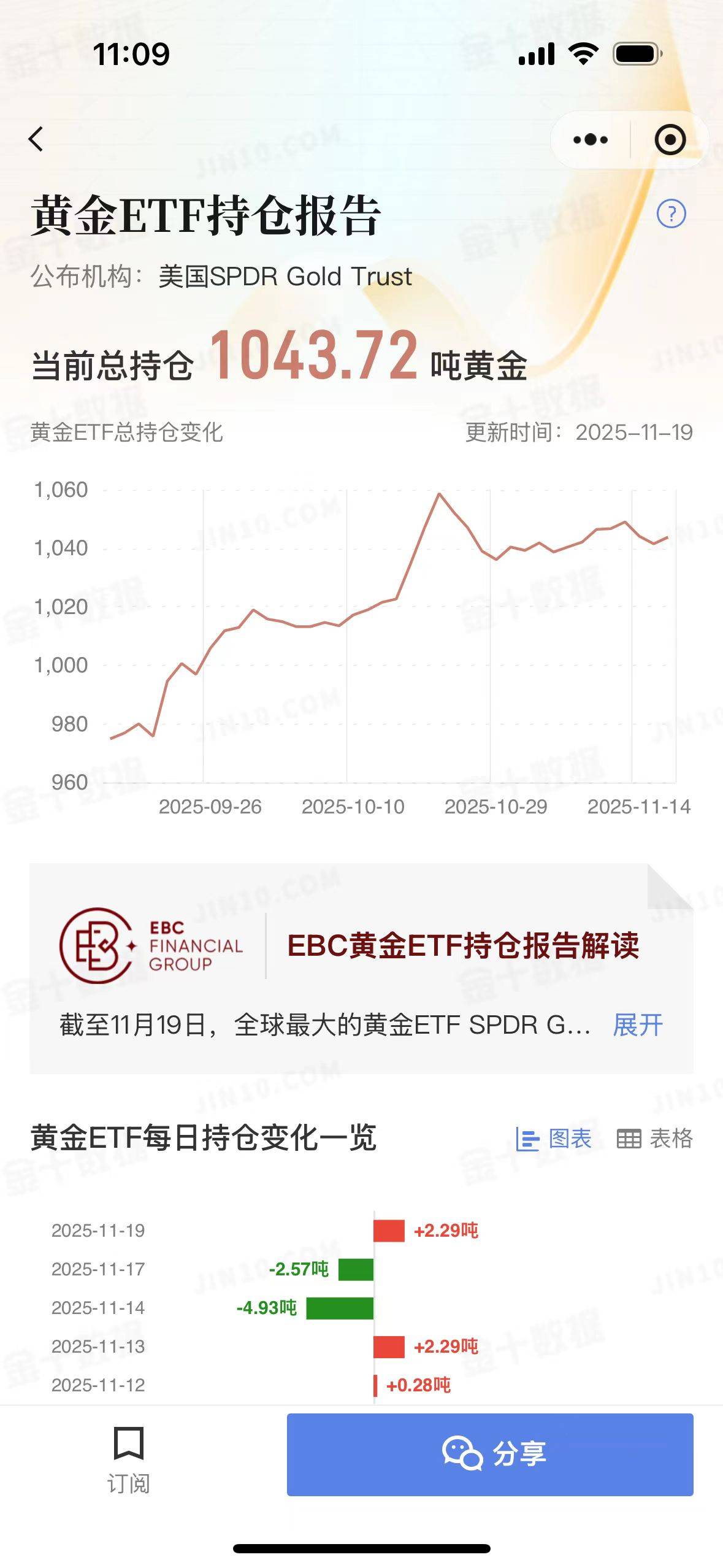 黄金ETF持仓量报告解读(2025-11-20)美指反弹 金价小幅回落