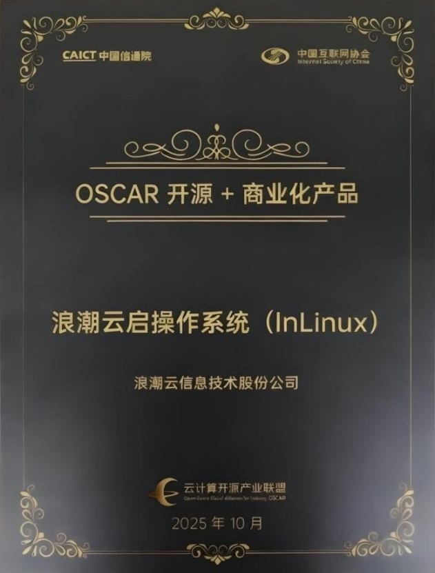 AI赋能+开源生态,浪潮云启操作系统荣获2025年“OSCAR开源+商业化产品”奖项