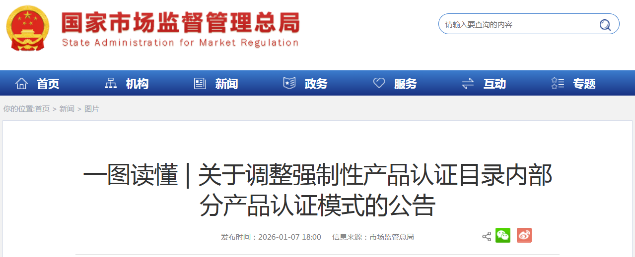 关于调整强制性产品认证目录内部分产品认证模式的公告