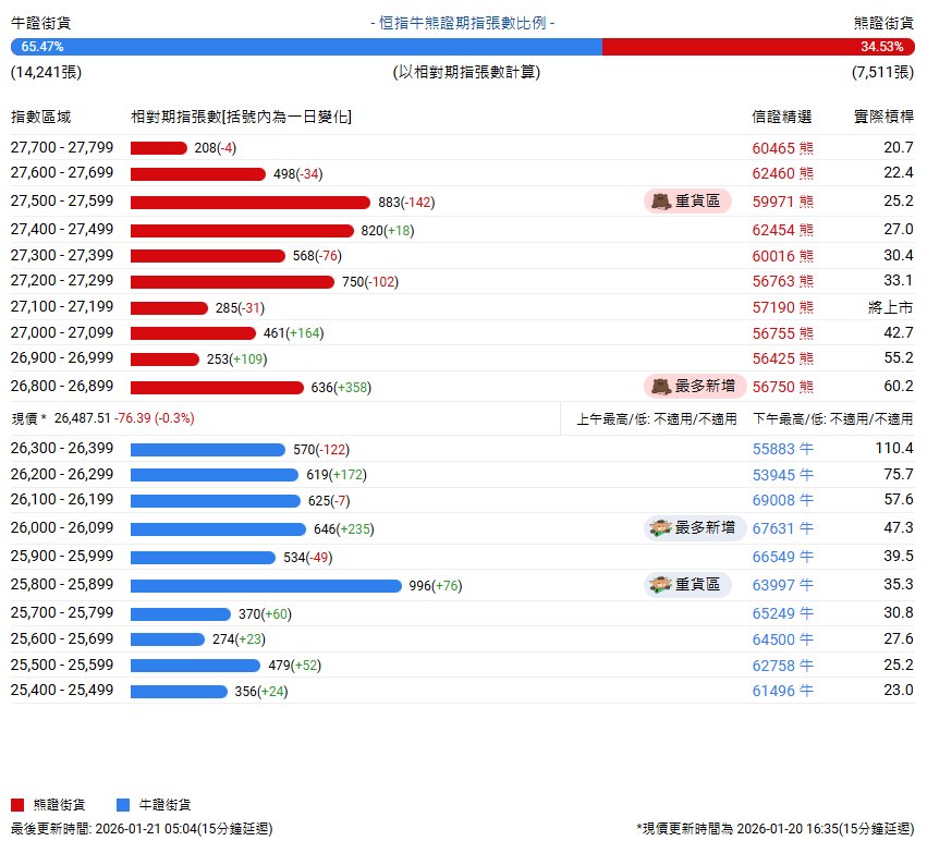 恒指牛熊街货比(65:35)︱1月21日