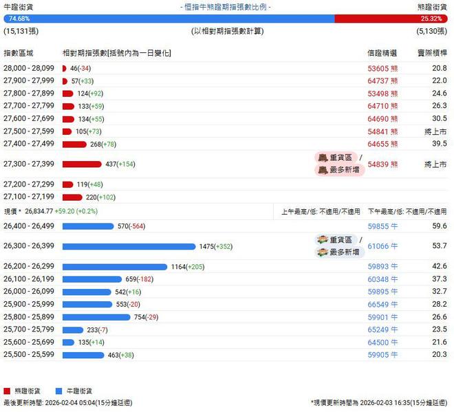 恒指牛熊街货比(75:25)︱2月4日