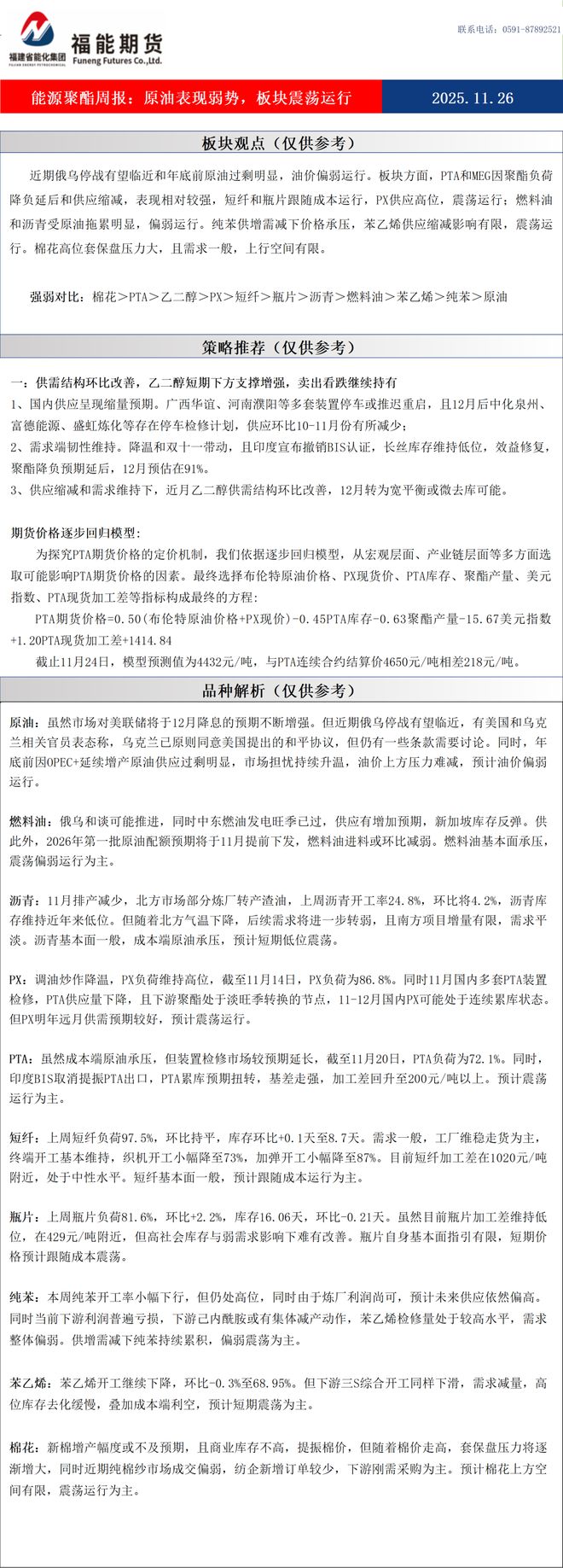 【能源聚酯周报】原油表现弱势,板块震荡运行(2025.11.26)