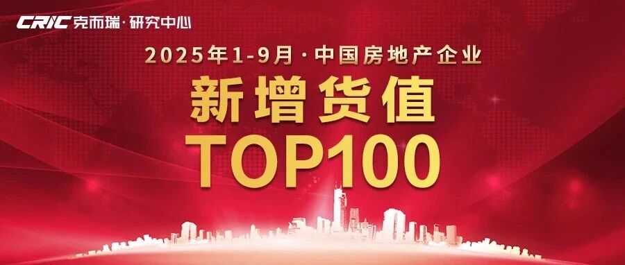 2025年1-9月中国房地产企业新增货值TOP100排行榜