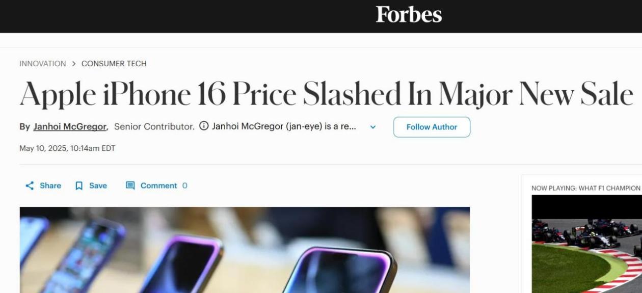 【环球网科技综合报道】5月12日消息,据Forbes报道称,随着母亲节促销活动的推进,苹果 iPhone 16 系列也加入了降价行列。此次促销通过亚马逊英国平 台进行,iPhone 16 全系机型价格均有所下调。 值得注意的是,此次促销中,除了 iPhone 16e 坚持全价外,其他 iPhone 16 型号均参与了降价活动。 与亚马逊的其他降价产品类似,此次 iPhone 16 系列的促销也不包含任何赠品或折扣配件,且不提供以旧换新服务。而 iPhone 16 是目前唯一一款无需配件 配对的 iPhone,使其维修更加便捷、便宜。从长远来看,尽管购买最新款 iPhone 的前期成本较高,但由于维修成本的降低,这一成本将随着时间的推移而 逐渐降低。 此外,由于 iPhone 17 可能受到进口关税的影响,iPhone 16 有望成为多年来最有价值的 iPhone 之一。 据京东平台信息,iPhone 16 Pro 128GB版本在叠加国家补贴500元后,到手价仅为5499元起,且支持12期免息分期付款。对于更大存储容量的用户,iPhone 16 Pro 256GB版本限时优惠2100元,结合以旧换新补贴及消费 ...