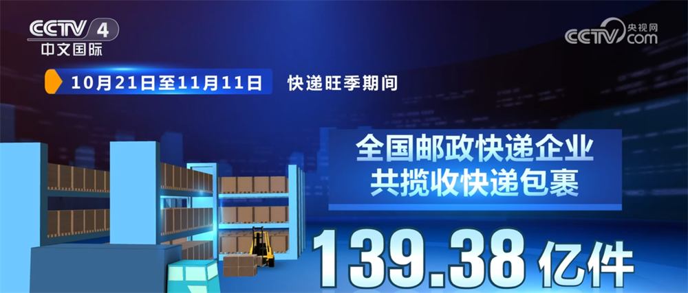 国家邮政局发展研究中心战略规划研究部主任刘江称:"快递市场规模持续扩大,彰显了邮政快递业在扩内需、促消费、稳增长中发挥的 关键作用。快递业通过拓展农村市场,实现上下游双向高效流动,有效激发了农村服务需求。同时,通过与先进制造业的深度融合,快递供应 链正朝着高端化、智能化方向转型。" 央视网消息:记者从国家邮政局了解到,从10月21日至11月11日,快递旺季期间,中国快递业务量增长明显,单日业务量峰值达7.77亿 件,创历史新高。 国家邮政局最新数据显示,10月21日至11月11日,快递旺季期间,全国邮政快递企业共揽收快递包裹139.38亿件,日均揽收量是日常业务 量的117.8%,旺季单日业务量峰值达7.77亿件,创历史新高。 ...