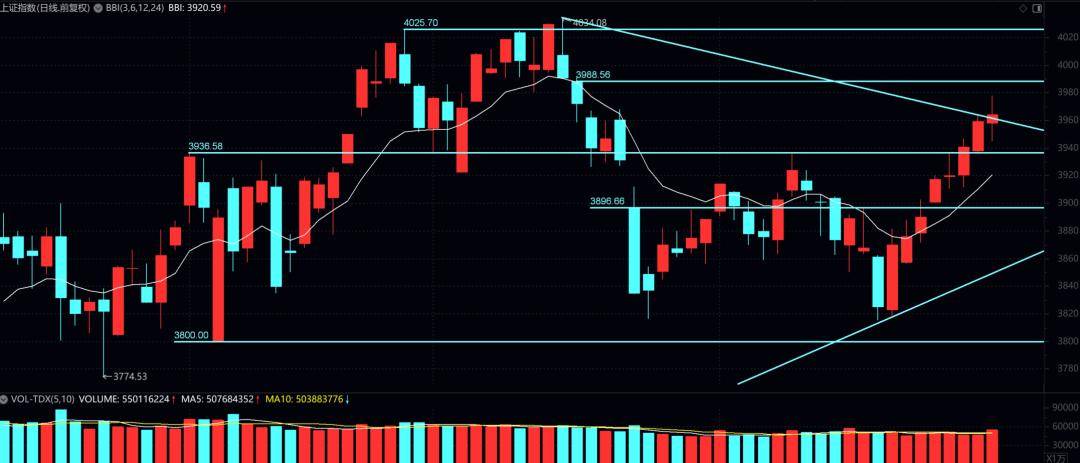 Core Viewpoint - The market shows potential for a mid-term strengthening, with short-term bullish advantages evident. The key focus is on whether the index can break through 3988, which would open the possibility for further gains towards 4034. Maintaining above 3920 is crucial as a bottom line [1][4][13]. Market Performance - The market opened lower at 3957, reached a high of 3977, and closed at 3963. The ratio of advancing to declining stocks was 1866 to 3414, indicating more declines than advances. The market exhibited disorganization, with no clear intention to break 3988, and a midday drop was attributed to technical requirements [2][16]. - The closing result was above 3960, which is acceptable but not ideal. The market has shown a rare eight consecutive days of gains, increasing the likelihood of 3815 being a significant low point [3][16]. Technical Analysis - The market needs to stabilize above 3936 to confirm the importance of 3815 as a low point. A breakthrough at 3988 is necessary for further advances towards 4034 [4][13]. - The daily key areas for the market are between 3924 and 3901, with strength indicated above 3977. The index is currently above the upper boundary, suggesting a strong position [7][17]. Short-term Strategy - The focus for the upcoming week is to prevent the formation of a short-term high point. The market should remain above 3960, with 3936 as a critical support level that should not be breached [4][13]. - The short-term technical indicators suggest that the market is currently in a position that could lead to further upward movement, but adjustments may be necessary [12][17]. Long-term Outlook - The long-term market outlook indicates that December may continue to show bearish trends or small candlestick formations. The potential for a month-long adjustment period exists, with a likelihood of oscillation rather than a one-sided decline [6][18].