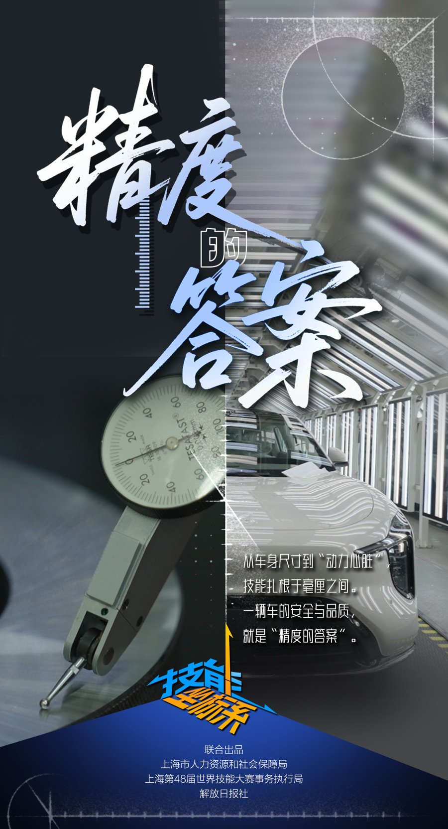 深度,传承薪火匠心。在上海,技能的深度发轫于永不褪色的红色根脉,并在新时代成为技能报国的信念与使命。它驱动着对 毫厘的苛求、对世界一流的执着,让图纸上的线条锻造出大国重器的筋骨。责任与荣誉超越时间,沉淀为一座城市深沉恒久的 精神根基。 而上海,正是这个坐标系的绘制者与赋能者。为加快培养一支素质优良、结构合理、与新质生产力发展相适应的高技能人才队 伍,近年来,上海围绕培养、评价、使用、激励等技能人才队伍建设的关键节点,加强顶层设计,为青年人才打造 从"工"到"匠"的成长通道,让技能成为照亮前程、成就梦想的广阔天地。 系列视频率先推出的第一集《精度的答案》,从汽车发动机"动力心脏"的微米级加工,到车身装配的严丝合缝,诠释毫厘之 间"精度的答案";在第二集《火花与巨轮》中,焊接闪耀的火花,连接起巨轮的筋骨,而火花中蕴藏的,正是那深蓝梦想的火 种,在一代又一代的大国工匠手中交接、远航。 一起跟随镜头,走进震撼的技能一线,探索"坐标系"的立体维度,读懂时代发展背后"技能的答案"。 从一位大师,看见一项技能;从一项技能,走进一个产业;从一个产业,映照城市和国家未来。 1月29日,由上海市人力资源和社会保障局、上海第48届 ...