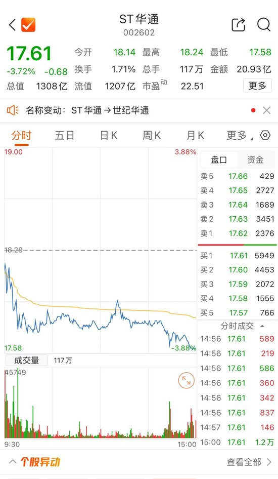 Core Viewpoint - ST Huatuo has successfully applied to revoke its other risk warnings, with the Shenzhen Stock Exchange approving the application swiftly, allowing the company to resume trading under its original name, Century Huatuo, starting November 12, 2025 [1][2]. Group 1: Company Actions and Compliance - The company submitted its application to revoke the risk warning on November 7, 2025, and received approval on November 10, 2025, demonstrating efficiency in the process [2]. - To eliminate risk warnings, the company has implemented corrective measures in response to regulatory findings, completing adjustments and corrections related to prior accounting errors from 2018 to 2023, as verified by Daixin Accounting Firm [2]. - The company has revised its governance and risk management frameworks, updating 23 regulations across six categories over the past year to enhance its risk resilience [2]. Group 2: Financial Performance - In Q3 2025, the company achieved a record revenue exceeding 100 billion yuan, marking ten consecutive quarters of revenue growth, with a net profit of 4.357 billion yuan [3]. - For the first three quarters of 2025, the company reported total revenue of 27.223 billion yuan and a net profit of 4.357 billion yuan, with operating cash flow reaching 6.278 billion yuan, surpassing the total figures for 2024 and setting historical highs [3]. - The company's market capitalization increased significantly from 38.2 billion yuan to 130.8 billion yuan as of November 10, 2025 [3]. Group 3: Stock Performance - As of November 10, 2025, ST Huatuo's stock price closed at 17.61 yuan per share, reflecting a decline of 3.72% [4][5]. - Following the revocation of risk warnings, the stock's daily trading limit will increase from 5% to 10% [2].