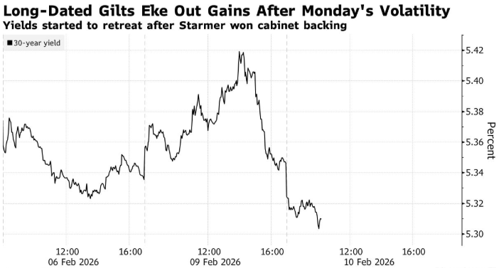 智通财经APP获悉,周二,英国借贷成本下降,原因是英国首相基尔·斯塔默巩固了其地位,下台的风 险消退。长期债券涨幅最大,英国30年期国债收益率在周一大幅上涨后回落4个基点至5.31%,当时市 场普遍认为斯塔默可能被迫辞职。英国10年期国债收益率也下跌了类似的幅度,至4.50%。 周二,斯塔默的职位似乎稳固了,因为他获得了内阁所有成员的公开支持,包括潜在的竞争对手韦斯· 斯特里廷和埃德·米利班德,以及另一位可能的继任者,前副总理安吉拉·雷纳。 皇家伦敦资产管理有限公司利率和现金主管Craig Inches表示,如果政治动荡平息,投资者将重新关注 英国央行潜在的降息、通胀数据和长期政府债务的供应。Inches称:"尽管存在政治闹剧,但金边债券 仍然看起来很有价值。" 此前,斯塔默的职位受到威胁,因为两名关键助手因工党资深人士彼得·曼德尔森被任命为英国驻华盛 顿大使而相继辞职,曼德尔森与爱泼斯坦有紧密联系。 然而,这种喘息之机可能只是暂时的。 Inches说道:"斯特里廷和雷纳今天暂时收起了他们的仇恨,除非再出现像爱泼斯坦事件那样的重大变 故,否则斯塔默面临的下一个障碍似乎是五月份的补选。" 分析指出,没有其他期限 ...