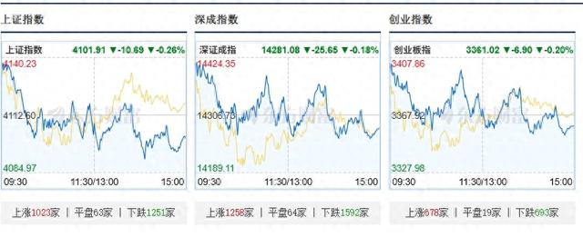 A股三大指数收跌,沪指险守4100点