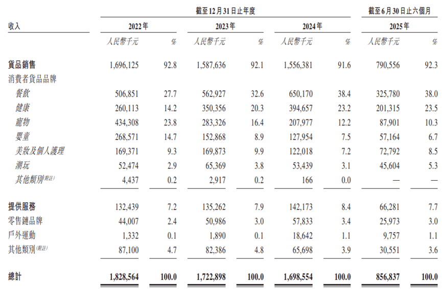 在数字零售蓬勃发展的时代浪潮下,中国数字零售市场展现出强大的活力与潜力。近日,上海凯诘电子商务股份有限公司 (简称"凯诘电商")向港交所递交招股书,拟在香港主板上市,这一举动再次引发了市场对数字零售解决方案行业的关 注。 业绩起伏:合作变动与市场变化下的挑战 | | | | 截至12月31日止年度 | | | | 截至6月30日止六個月 | | | --- | --- | --- | --- | --- | --- | --- | --- | --- | | 收入 | 2022年 | | 2023年 | | 2024年 | | 2025年 | | | | 人民幣千元 | হার | 人民幣千元 | ছব | 人民幣千元 | 96 | 人民幣千元 | 96 | | 貨品銷售 | 1,696,125 | 92.8 | 1,587,636 | 92.1 | 1,556,381 | 91.6 | 790,556 | 92.3 | | 消費者貨品品牌 | | | | | | | | | | 餐飲 | 506,851 | 27.7 | 562,927 | 32.6 | 650,170 | 38.4 | 325,780 | ...