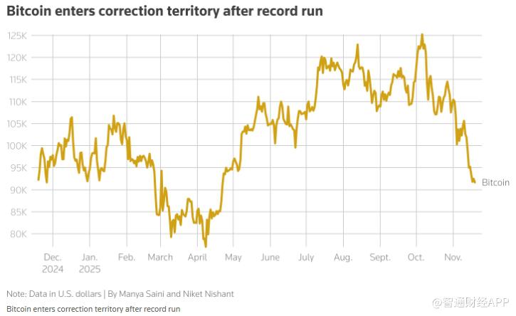 德银认为,与以往主要由散户投机驱动的崩盘不同,比特币本轮调整下跌是由宏观经济逆风、美联储鹰派信号、 监管进程停滞、机构资金外流,以及长期持有者获利了结这"五重冲击"共同作用的结果。这预示着比特币的投资 逻辑发生转变,风险管理的重要性被提到了前所未有的高度。 11月24日,德意志银行发表研报认为,与以往主要由散户投机驱动的崩盘不同, 比特币本轮调整下跌是由宏 观经济逆风、美联储鹰派信号、监管进程停滞、机构资金外流,以及长期持有者获利了结这"五重冲击"共同作 用的结果。 数据显示,比特币从10月初约12.5万美元的峰值暴跌近35%至8万美元附近,导致加密市场总市值蒸发约1万亿 美元。这一轮调整不再是单一的币圈内部事件,而是比特币日益融入全球宏观金融体系后,其作为风险资产属 性的集中体现。 研报强调,比特币与科技股的相关性已大幅提高,其"数字黄金"的避险叙事在当前环境下正面临严峻考验。 这 预示着比特币的投资逻辑正在发生根本性转变,风险管理的重要性被提到了前所未有的高度。 德银指出,随着美国政府停摆、全球贸易紧张局势重燃以及对AI相关估值的担忧,美股走弱之际,比特币的价 格走势更像一只高增长的科技股,而非独立于市场 ...
