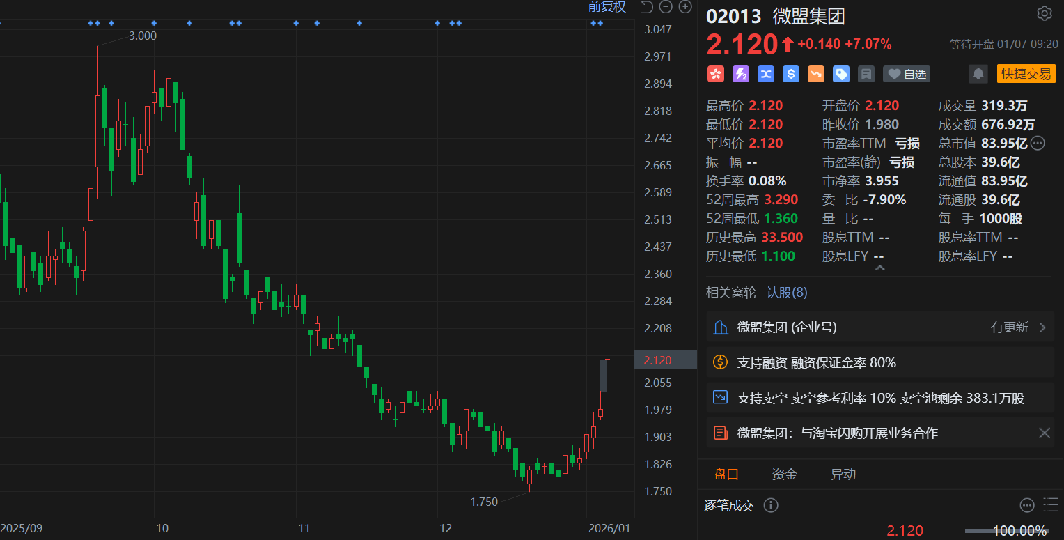 港股异动丨微盟集团大幅高开7% 与淘宝闪购开展业务合作