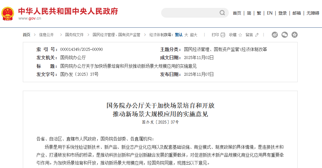 国办印发,事关加快场景培育和开放推动新场景大规模应用