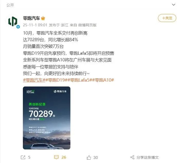 零跑汽车:9月交付66657台 同比增长超97%