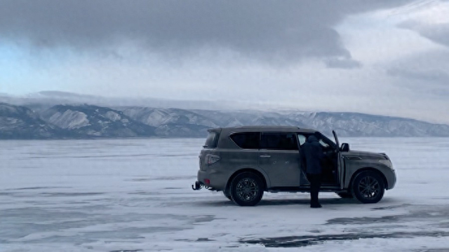 坠湖车辆违规驶入贝加尔湖 贝加尔湖因升温冰上通道未开放