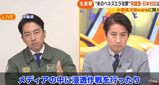 转自:北京日报客户端 连日来,美国政府强行控制委内瑞拉总统马杜罗一事,在日本国内也引起了很大震动。不少日本媒体追 问日本政府如何看待美国政府大搞双重标准、破坏国际法的做法。可日本首相高市早苗以及防卫大臣小 泉进次郎等高官,却一直回避相关提问。 不过,日本媒体的"锲而不舍"终于还是逼出了小泉的回应。可他给出的回应却并不是在批评美方对国际 法和国际秩序的破坏,反而是将矛头对准了日本的媒体,认为这些媒体的提问是在反日…… 根据日本《产经新闻》的报道,在1月8日远程参加日本富士电视台的一档政论节目时,小泉被节目评论 员问及美国政府是否还值得日本的信任。毕竟,美国政府不仅无视国际法强行控制了委内瑞拉总统马杜 罗,还企图吞并丹麦格陵兰岛,对盟友的利益更是漠不关心。 然而,在过去几天里拒绝评论美国对委内瑞拉做法的小泉,却拐弯抹角地指责起了日本媒体,认为媒体 不断质疑美国的做法,是在帮"外国势力"分化美日同盟,损害日本的利益。 "一些势力正以不易被民众察觉的方式,在媒体领域开展渗透行动,同时在网络空间发动各类信息战, 以此塑造公众舆论",小泉宣称,"一旦'美国不可靠'的论调在日本社会蔓延开来,谁会因此窃喜,答案 不言自明"。 ...