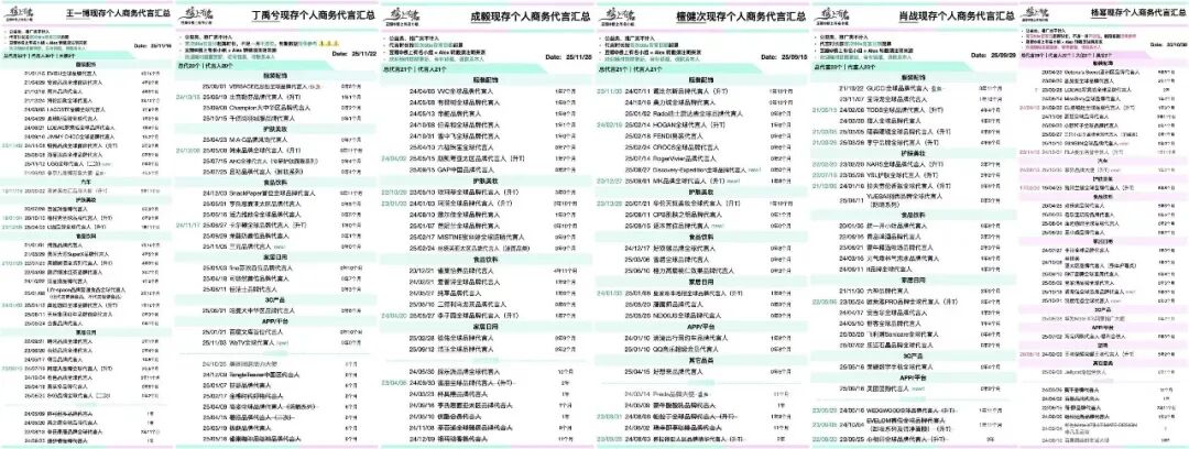 通常情况下,商务代言是明星成绩的晴雨表。一览商务增减,就能看出今年谁有效播剧、谁迅速上升、谁又下滑明显,让大家可以夸有所据、嘲有所依, 打起嘴仗都更有劲头了。 但在2025年,这套判定逻辑略嫌失灵。 过去一年,代言数量最多的是状似"退圈"的王一博。整个2025年,王一博没有影视作品播出、公开曝光极少,只上线了两部纪录综艺《探索新境》,却仍 然以30+的代言数量一骑绝尘。 其余处于商务第一梯队的明星,代言数量都在20+,普遍有作品播出且相对活跃。男演员中,排在前列的是肖战、檀健次、丁禹兮、成毅,代言数量都在 20+。女演员则只有杨幂拥有超过20个代言。 | 和大同 Colon Co., Ltd. 14 | 王一周现存个人离务代言汇总 | | | 丁惠兮现存个人商务代言汇总 | | m 3 理學个人服务代言汇总 | 程健次现存个人服务代言汇总 | | | 尚战现存个人商务代言汇总 -- 1 | 格塞吸存个人蕴各代言汇总 | | | --- | --- | --- | --- | --- | --- | --- | --- | --- | --- | --- | --- | --- | | (idm. BC 221 ...