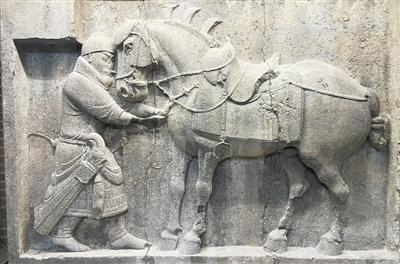 昭陵六骏石刻之"飒露紫"。霍宏伟供图 2012年2月,当我第一次来到美国费城宾夕法尼亚大学考古学与人类学博物馆中国厅时,看到大唐昭陵 六骏之两骏石刻飒露紫与拳毛騧,立刻被两骏的体量与神韵深深震撼。历经1300余年的岁月沧桑,它们 依然焕发着旺盛的生命力,仿佛能够感受到它们对回归故土的渴望。我的脑海中自然浮现出了南宋词人 辛弃疾的名句"西北望长安,可怜无数山"。 昭陵是唐太宗李世民的陵墓,位于今陕西省礼泉县东北的九嵕山上。六骏是李世民统一天下、转战沙场 时所骑的六匹战马,分别为"拳毛騧""什伐赤""白蹄乌""特勒骠(亦作特勤骠)""青骓""飒露紫"。李世 民为彰显他在创建唐王朝中的战功和追念在战争中出力的良骥,于贞观十年(636年)诏令雕刻六骏石 像,他亲自撰写赞文,初唐著名画家阎立本绘制蓝本,阎立德主持依形复刻于石上,书法家欧阳询书 丹,殷仲容刻石,堪称"五绝"。昭陵六骏代表了唐代陵墓石刻的最高水平,在中国美术史上具有重要地 位。 飒露紫原为西面第一骏,以浮雕形式表现丘行恭为其拔箭的场景,是六骏中唯一带有人物的,也是保存 最完整的作品。据《旧唐书》记载,李世民与王世充在洛阳邙山的一次交战中,战马"飒露紫"中箭 ...