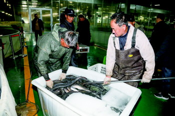 陈丹 康岩 济宁报道 近日,微山县现代渔业产业园养殖的10吨鳗鲡,经过严格的检验检疫,成功出口韩国。这批鳗鱼的成功出口, 不仅标志着我国最北端的鳗鲡养殖基地取得关键性市场突破,其凭借"智慧养殖"与长生长周期培育出的 紧实肉质,更为北方特色水产养殖开拓高端市场提供了新范本。 走进微山湖现代渔业产业园智慧渔业车间,一个个圆形养殖池整齐排列,蔚为壮观。池内水流微微旋转的 同时,一端出水进行过滤、一端打进过滤后的新水。而在B6车间,"明星品种"鳗鲡正在不同的养殖池中游 荡、嬉戏、休息、进食。身形修长柔韧的它们,体态蜿蜒、眼神深邃,如流水般灵动,却又光滑丰腴。 "鳗鲡背部呈暗绿色,腹部淡白,背鳍和臀鳍后部边缘呈黑色,肉质细嫩鲜美,营养价值高,被称为'水中人 参'。"养殖车间主任李广辉从1990年开始从事水产养殖,他介绍,鳗鲡性情谨慎,喜欢流水、弱光环境。而 10吨鳗鱼"游"上韩国餐桌 去年12月初,10吨鳗鲡由微山县现代渔业产业园运至威海再出口韩国,游上韩国人的餐桌。"这批鳗鱼成长 周期近两年,是旧鳗,相比生长周期一年的新鳗,肉质更紧、更弹牙。在韩国国内市场,即使是大宗交易,也 能卖上12万元/吨的好价格,而在零售市场 ...