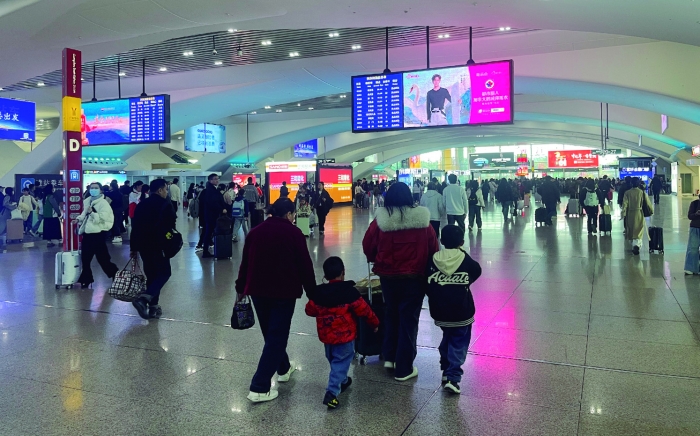广州南站 李五强 摄 ◎记者 李五强 2026年春运首日,广州南站熙熙攘攘、人流如织,旅客踏上返乡旅程。据有关部门预测,2026年春运期 间,国铁广州局预计发送旅客7855万人次,同比增长4.8%;广州南站预计到发旅客2135万人次,白云 机场接送旅客总量预计突破1051万人次,多项指标预计将创历史新高。 广州市统筹铁路、航空、公路、水路等运力资源,通过AI智能调度、智慧安检、全流程自助服务等科 技手段赋能,叠加运力精准投放与枢纽功能升级,全力保障春运畅行。 科技硬核护航 通行高效有序 在广州南站,记者看到,虽然客流量较大,但安检通道现场旅客依次排队、有序通过,无拥堵现象,安 检效率较往年显著提升,实名制验证通道甚至不需要排队。 据了解,广州南站在安检通道增加了38套智能判图系统。该系统能够对危险品进行智能识别,并利用 AI智能算法,实现对违禁品的智能识别、警示,有效提升了安检工作效率。 广州白云机场预计起降航班6.57万架次,日均1643架次,同比增长8.45%;接送旅客总量预计达1051.31 万人次,日均26.28万人次,同比增长11.77%;货邮吞吐量将达25.07万吨,同比增长6.2%。 在广州南站 ...