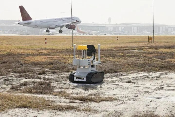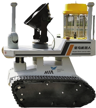杭州机场上新全国首台套履带式智能驱鸟机器人