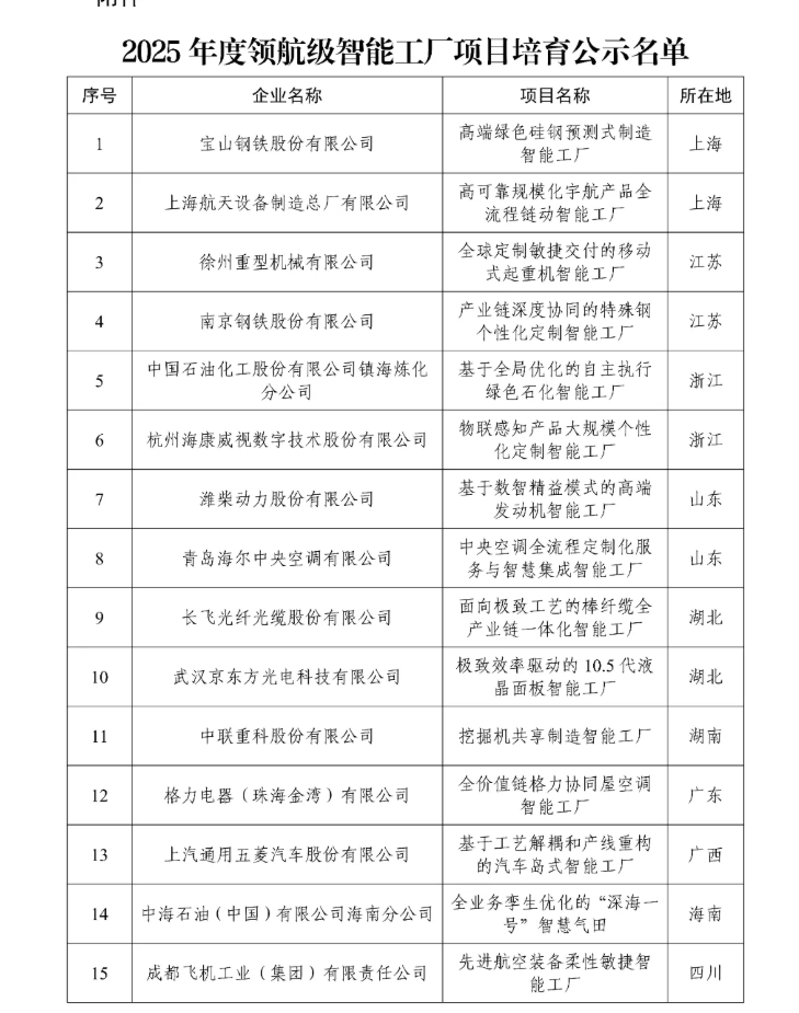 首批15家领航级智能工厂亮相 勾勒中国智能制造新图景