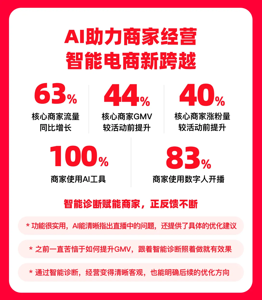 Core Insights - The "Double 11" shopping festival by Baidu has successfully concluded, showcasing significant growth driven by digital human live streaming, with a 119% increase in broadcast scale and a 91% increase in GMV (Gross Merchandise Value) [1][2] - The AI capabilities of the platform have empowered core merchants, resulting in a 44% increase in GMV and a 63% increase in traffic compared to previous periods [5][13] - The "省心选" IP matrix saw an overall GMV increase of 42%, indicating strong consumer trust and engagement [9][14] Digital Human Live Streaming - Digital human live streaming has become a new growth engine, with 83% of merchants utilizing this feature during the Double 11 event, leading to a significant increase in both scale and effectiveness [2][4] - The high-conviction digital human model achieved a 63% higher conversion rate compared to traditional live streaming, demonstrating its effectiveness in driving sales [4][10] Merchant Performance - Core merchants experienced a 44% increase in GMV during the event, with a 40% increase in follower counts, showcasing enhanced brand engagement [5][13] - Various categories, including jewelry, tea, and apparel, saw breakthrough performances, with specific merchants achieving GMV milestones of over 1 million [11][17] Innovative Marketing Strategies - The platform introduced innovative marketing tactics, such as the "Super Fan Festival," which resulted in a 73.3% increase in GMV for participating merchants and a 40% increase in follower counts [7][9] - New promotional strategies like "One Item Direct Discount" and "Every Purchase Returns" showed daily GMV increases of 103% and 203%, respectively, highlighting their effectiveness in driving conversions and repeat purchases [7][13] User Experience and Trust - The platform's AI tools significantly enhanced user experience, with a 63% increase in the usage of smart comparison tools and a 76% increase in active searches for new products [7][13] - The "省心选" IP demonstrated strong performance, with GMV increases of 55% and notable growth in specific categories, reinforcing consumer trust in the platform [9][14] Influencer Ecosystem - The influencer ecosystem thrived during the event, with a 373% increase in GMV from influencer-led live streams, indicating a successful transition from traffic to business conversion [10][15] - The combination of top influencers and niche content strategies led to significant engagement and sales growth across various categories [10][15]