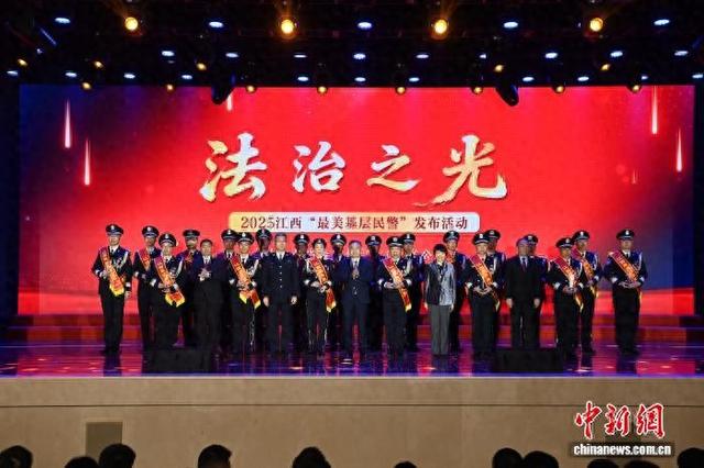中新网南昌1月10日电 (记者 李韵涵)1月9日晚,江西省委宣传部、省公安厅在南昌联合举行"法治之 光"——2025江西"最美基层民警"发布活动,共有20名民警获评2025江西"最美基层民警"。 "晨光照亮法治的篇章,训词在血脉中流淌……"发布活动在《法治之光》中拉开帷幕,随后,"最美基 层民警"先进事迹通过多种形式进行展示。 《马上到》再现社区民警贴心服务群众的温暖场景,《沐光而行》演绎民警护校安园的赤诚初心,《向 明天出发》展现交警铁骑护航生命的热血画面,《愿天下无诈》讲述反诈民警与诈骗分子斗智斗勇的惊 心动魄。 朱勇等20名民警获评2025江西"最美基层民警"。他们之中,既有以生命赴使命破迷局的硬核刑警,也有 以赤诚护企安纾企困的派出所民警;既有以坚守护长江安澜的水上警察,亦有以真心解百姓烦忧的社区 民警;既有以热血守校园平安的特巡警,还有以担当护安全畅通的交通警察和铁路警察。 整场发布活动通过事迹展播和现场颁奖等形式,展现了"最美基层民警"忠诚的政治品格、真挚的为民情 怀和严明的纪律作风。江西公安民辅警将以"最美基层民警"为榜样,聚焦"走在前、勇争先、善作为"目 标要求,挺膺担当作为、忠诚履职奉献。( ...