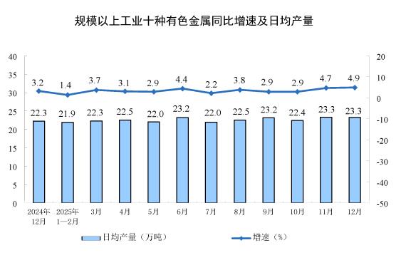 统计局:1-12月十种有色金属累计产量为8175万吨 同比增长3.9%。