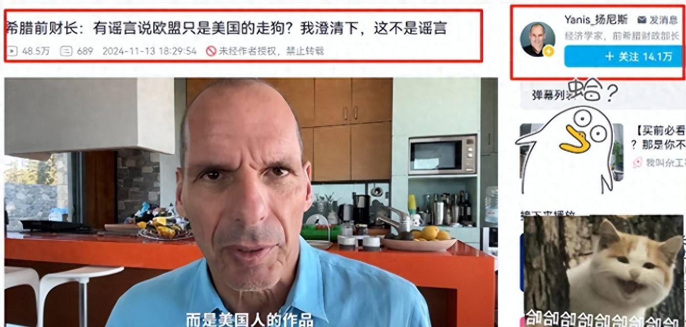 希腊前财长:中国人造谣说欧盟是美国的狗,我澄清一下不是谣言