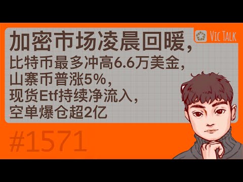 加密市场凌晨回暖,比特币最多冲高6.6万美金,山寨币普涨5%,现货Etf持续净流入,空单爆仓超2亿【Vic TALK 第1571期】