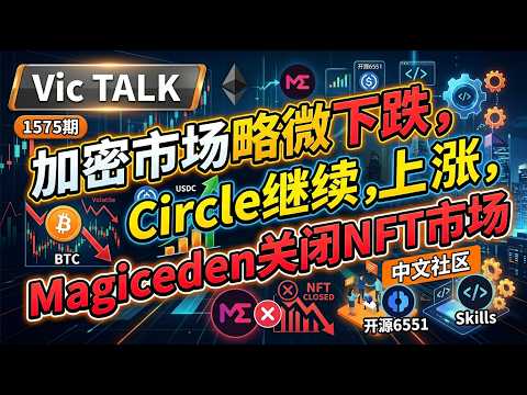 加密市场略微下跌,Circle继续上涨,中文社区小伙伴开源6551和Skills,Magiceden宣布关闭Nft市场【Vic TALK 第1575期】