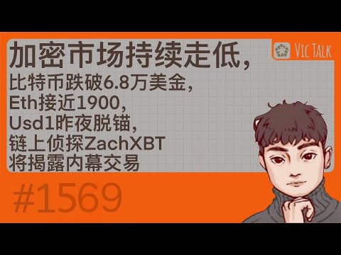 加密市场持续走低,比特币跌破6.8万美金,Eth接近1900,Usd1昨夜脱锚,链上侦探ZachXBT将揭露内幕交易【Vic TALK 第1569期】