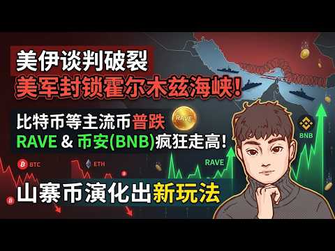 美伊谈判破裂,美军封锁霍尔木兹海峡。比特币等主流币普跌,rave和币安人生疯狂疯狂走高,山寨币演化出了新玩法 【Vic TALK第1632期】