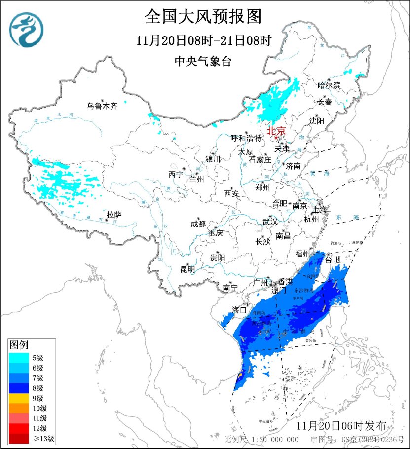 我国东南部和南部近海有大风 部分地区阵风达7至8级