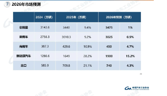 中汽协:预计2026年汽车市场总销量为3475万辆,同比增长1%