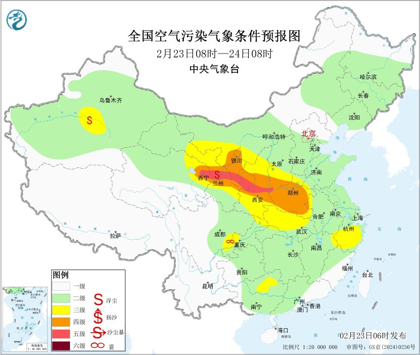 本文转自【中央气象台】; 北方沙尘天气减弱消散 由于沙尘天气范围缩小、强度减弱,因此解除沙尘暴蓝色预警。但2月23日08时至24日08时,青海东北部、宁夏中北 部、陕西中北部、河南、湖北北部、浙江中部等地的部分地区仍有扬沙或浮尘天气。 具体预报如下: 京津冀及周边区域 未来一周,区域大部大气扩散条件总体较好。 长三角区域 23日,受上游沙尘传输影响,区域大部有扬沙或浮尘天气。23日夜间起,受降水天气影响,沙尘天气逐渐减弱消散。 汾渭平原 23日,受上游传输影响,区域大部有扬沙或浮尘天气。24日起,区域大气扩散条件一般,其中陕西关中地区有轻度 霾。 未来一周,区域多降水,大气扩散和湿清除条件总体较好。 珠三角区域 未来一周,区域大部大气扩散条件较好,无明显雾霾天气。 西南区域 未来一周,区域大部大气扩散和湿清除条件较好,四川盆地南部的部分地区有间歇性轻度霾。 东北区域 未来一周,区域大部大气扩散和湿清除条件较好,区域中部有间歇性霾天气。 华中区域 西北区域 23日,区域东南部的部分地区有扬沙或浮尘天气。未来一周,新疆天山北坡大气扩散条件一般,有轻度霾。 全国空气污染气象条件预报图 2月23日08时-24日08时 ...