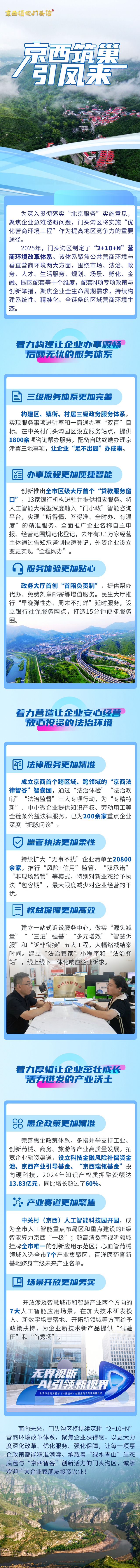 转自:北京日报客户端 人才是地区发展的第一资源。自然生态好则万物生长,人才生态好则群贤毕至。近年来,门头沟区把涵 养自然生态的理念应用到人才领域,围绕人才"引、育、用、留"全链条,系统实施"灵山计划""智谷计 划""百花计划""永定计划"四大专项计划,打造"热带雨林式"的人才发展生态,为人才发展提供"好空 气、好土壤、好阳光、好雨露",实现十四五时期人才快速聚集,人才总量增速位居全市生态涵养区前 列,为地区绿色高质量转型发展注入强劲动力。 为深入贯彻落实"北京服务"实施意见, 聚焦企业急难愁盼问题,门头沟区将实施"优 化营商环境工程"作为提高地区竞争力的重要 途径。 2025年,门头沟区制定了"2+10+N"营 商环境改革体系。该体系聚焦公共营商环境与 垂直营商环境两大方面,围绕市场、法治、政 务、人才、生活服务、规划、场景、孵化、金 融、园区配套等十个维度,配套N项专项政策与 创新举措,聚焦企业全生命周期需求,持续构 建系统性、精准化、全链条的区域营商环境生 版 着才网建计金业办事顺畅 后顾无忧的服务体系 =] 三级服务体系更加完善 构建区、镇街、村居三级政务服务体系, 实现服务事项进驻率和一窗通办率"双百 ...