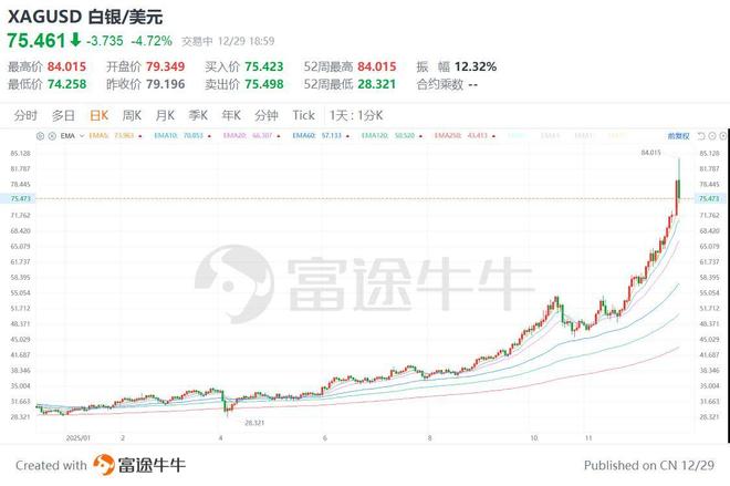 格隆汇12月29日|现货白银今日早盘上演"过山车"行情,在短暂飙升突破84美元后急速跳水,一度跌回 74.2美元。市场剧烈波动的原因,X疯传一则未经证实的重磅传闻:一家大型银行因白银期货空头爆 仓,无法缴纳23亿美元追加保证金,最终被强制平仓,并传出美联储紧急注资340亿美元救市。尽管传 闻未点名,但市场猜测主要集中在少数几家欧洲大型银行,也有声音曾指向摩根大通。对于这则传闻, 市场态度不一,多数分析人士对其真实性持怀疑态度,并指出多项疑点,例如COMEX 白银市场在周末 并无交易。 然而,有宏观研究团队对涉事银行(传闻指向某欧洲大行)进行了压力测算:即使假设单一银行独自承担 COMEX市场全部200亿美元白银空头(对应49689份合约),在银价从50 美元涨至80美元的极端情况下, 其流动性支出压力约为77.5亿美元。该欧洲大行拥有约3300亿美元的高品质流动性资产。因此,77.5亿 美元的支出"并非难事,更不至于引发破产"。 点。 分析师强调,虽然数据显示流动性压力可控,但市场最担忧的是"先卖后问"的恐慌逻辑。即便传闻不 实,市场普遍的担忧仍可能导致相关银行股价波动,形成股价下跌、担忧加剧、股价进一步下跌 ...