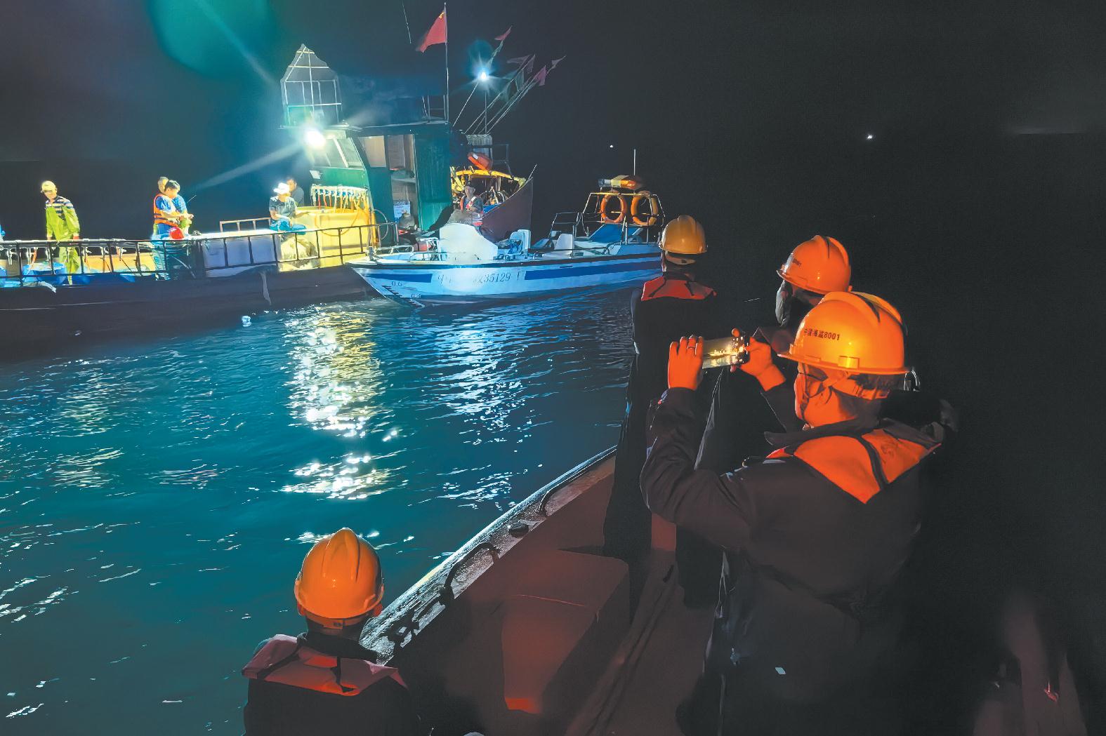 10月1日,"中国海监8001"船在任务海域举行海上升旗仪式,凝聚守护蓝色国土的坚定信念。升旗仪式后,执法船即刻奔赴巡查海域,以"节日不打烊、 执法不停步"的坚守,将爱国情怀转化为守护海上安全的实际行动。(杨杰) 执法人员夜间驾驶快艇在相关海域查获违规渔船。颜世江摄 9月28日~30日,特勤执法支队聚焦"双节"前海上安全关键节点,多维度开展渔业执法行动。在海上事故多发区、商渔船密集交汇区,引导劝离违规渔船 15艘次,有效规范航行秩序;在苔菉镇、黄岐镇海域查获"三无"船舶3艘、违规在册渔船1艘;在马祖列岛东面海域查获涉嫌违规外省渔船2艘,切实以"零容 忍"态度筑牢渔区安全防线。此次联合行动同步聚焦涉海项目、无居民海岛、海洋观测站点巡查,以科技手段提升执法效能。 中秋、国庆"双节"到来之际,福建省海洋与渔业执法总队特勤执法支队调派"中国海监8001"执法船在闽江口海域开展"蓝剑2025-24(178次)"暨海上渔 业船舶安全生产联合执法行动,切实筑牢福建海域节日期间海上安全屏障,为渔民平安过节、渔业平稳生产保驾护航。 ...