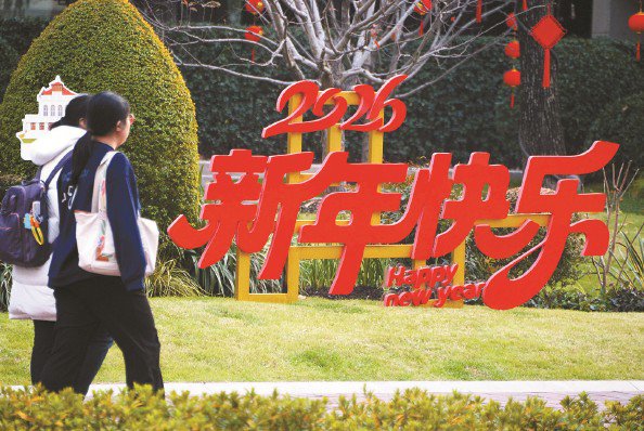 年终观察 一券在手,买遍全城 今天是2025年最后一天,跨入2026年的脚步越来越近,申城主要道路和商圈张灯结彩,喜迎新的一年到 来。图为淮海中路街头绿地里,"2026新年快乐"字样格外醒目 杨建正 摄影报道 从年初推出、贯穿全年的"乐·上海"服务消费券到年中各区纷纷推出的各种"定制款"消费券,再到年末 力度不减、热度不降的各种消费优惠,小小一张券为上海的消费市场注入了满满的元气,撬动申城消费 全年"长红"。 >>>详见第4—5版 活动速递 缤纷活动,等你来玩 元旦假日期间,本市将举办300余项活动,包括文艺演出132场、演唱会13场,以及文博美术展134项; 今天起至2026年1月3日,全市景观照明开启重大活动模式;此外,全市11个区策划了16项奔跑活动,市 民朋友们可以参加"新年第一跑"唤醒活力。 >>>详见第6版 ...