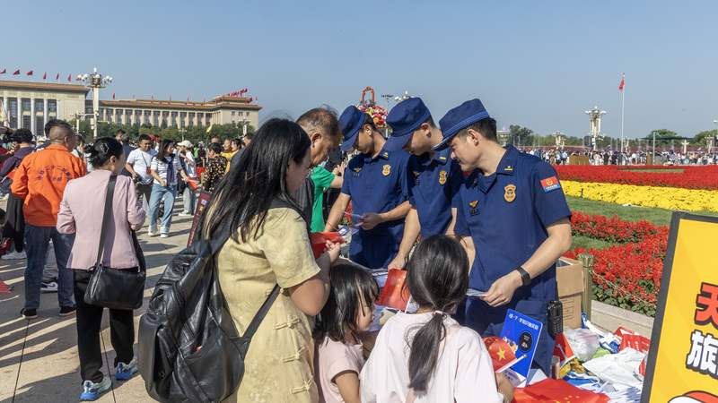 新京报讯(记者张静姝)在2025年国庆中秋"双节"叠加的8天长假里,天安门地区作为首都核心地标,迎来310万 余人次游客,单日最高客流突破52万人次,10月1日当天有12.1万名群众现场观礼升国旗仪式。天安门地区消防救 援支队构建起立体化消防安全屏障,守护祖国心脏的平安祥和。 "百姓过节,我们过关",为确保"十一"升国旗仪式现场消防绝对安全,9月30日晚,支队便按照方案部署,最大化 派出执勤力量投入天安门广场执勤一线,坚持网格防控,不间断排查检查消火栓、灭火器、垃圾桶,消除动态隐 患,疏导游客、维持秩序、帮扶群众。同时,支队后方密切关注指挥大屏,分析研判、精准调度。指战员人均执 勤15小时,巡逻3万步、20余公里。 节日期间,支队立足地区"大客流"实际和节日安全特点,着眼提升全民消防安全意识,精心组织开展各类"线上 +线下"宣传活动,通过多样化载体、立体化传播,构建起全方位消防宣传格局。特别是在天安门广场等大客流区 域开展沉浸式消防宣传活动,联合美团、蚂蚁集团丰富宣传模式,在活动现场设置文创打卡区、消防知识问答 区、消防合影区、消防宣传互动区等多个区域,在天安门广场建立起一个集游览纪念、拍照打卡、学习安全知识 ...