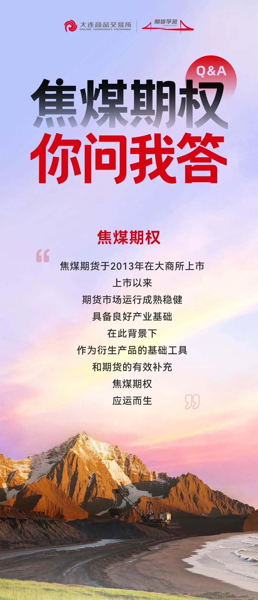Core Viewpoint - The introduction of coking coal options is a significant development in the derivatives market, complementing the existing coking coal futures and enhancing trading strategies for market participants [2][3]. Group 1: Coking Coal Options Overview - Coking coal options were introduced as a derivative product to provide a more flexible trading tool alongside coking coal futures, which have been operating steadily since their launch in 2013 [2]. - The underlying asset for coking coal options is the coking coal futures contract listed on the Dalian Commodity Exchange (DCE) [12]. Group 2: Option Basics - An option is an agreement between two parties that grants the buyer the right to buy or sell a specific asset at a predetermined price within a specified time frame [4]. - The premium for an option is the fee paid by the buyer to the seller for the rights conferred by the option contract [6]. - There are two types of options: call options (which give the right to buy) and put options (which give the right to sell) [7]. Group 3: Pricing Factors - Option prices are influenced by several factors, including the underlying asset price, volatility, time to expiration, strike price, and interest rates [9][10]. - As the underlying asset price increases, call option prices rise while put option prices decrease, and vice versa [9]. Group 4: Contract Specifications - Each coking coal options contract corresponds to one futures contract, with a trading unit of 1 lot equating to 60 tons of coking coal [13]. - The pricing unit for coking coal options is consistent with that of the underlying futures, quoted in yuan per ton [15]. Group 5: Trading and Exercise Rules - Coking coal options are American-style options, allowing buyers to exercise their rights on any trading day before expiration [19]. - The last trading day for coking coal options is the 12th trading day before the delivery month of the underlying futures contract [26]. - Coking coal options have daily price limits similar to those of the underlying futures, ensuring controlled volatility [28]. Group 6: Participant Requirements - Participants in coking coal options trading must meet certain suitability criteria, including knowledge, available funds, and trading experience [33]. - Domestic clients with trading permissions for options can directly participate, while foreign clients are currently not allowed to trade [34].