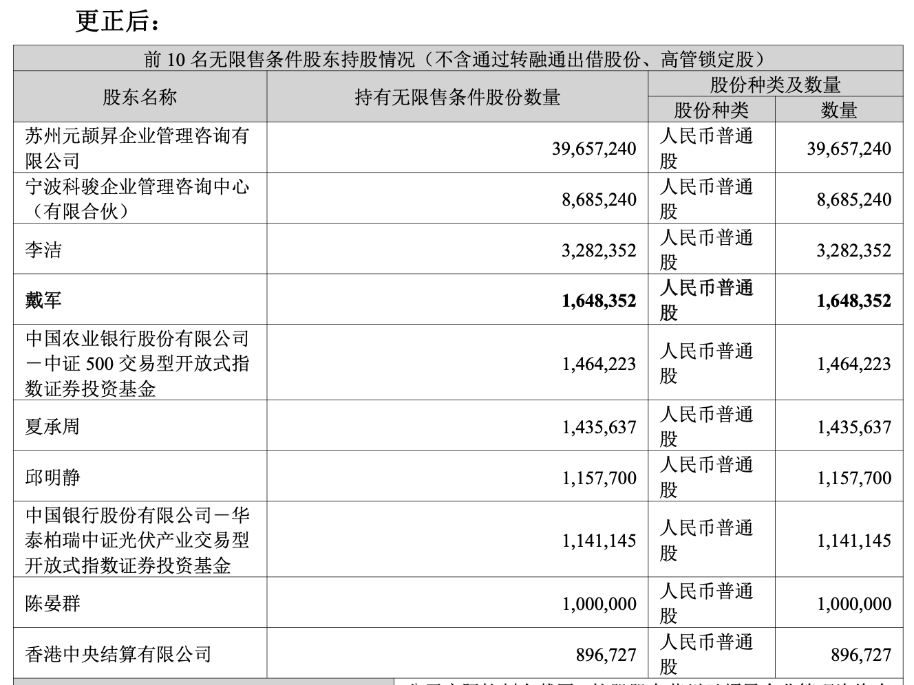 三季报刚披露不久,罗博特科因为一处粗心疏漏,紧急披露更正公告。 11月4日,罗博特科公告,经事后复核,须要对《2025年三季度报告》部分内容进行更正。 更正内容是,对《2025年三季度报告》"二、股东信息"之"(一)普通股股东总数和表决权恢复的优先股股东数量及前十名股东持股情况表"之"前10名无限 售条件股东持股情况(不含通过转融通出借股份、高管锁定股)"表格中的股东名称和持有无限售条件股份数量进行更正。 对比更正前后,前10名无限售条件股东持股情况中,罗博特科漏写了戴军的持股情况。 据悉,公司实际控制人戴军、控股股东苏州元颉昇企业管理咨询有限公司、股东宁波科骏企业管理咨询中心(有限合伙)三位股东为一致行动人。 | | 前 10 名无限售条件股东持股情况(不含通过转融通出借股份、 | 高管锁定股 | | --- | --- | --- | | 股东名称 | 持有无限售条件股份数量 | 股份和 | | | | 股份种类 | | 苏州元颉异企业管理咨询有 | 39,657,240 | 人民币普通 | | 限公司 | | 股 | | 宁波科骏企业管理咨询中心 | 8,685,240 | 人民币普通 | | (有限合 ...