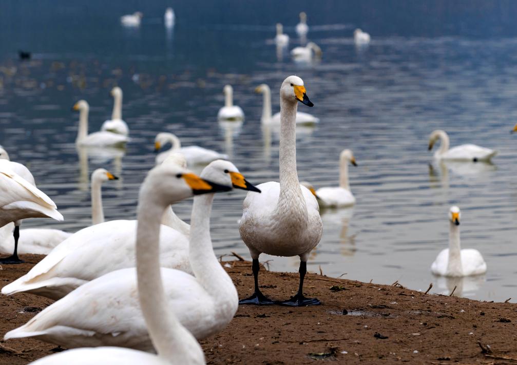 山西芮城圣天湖变身大天鹅越冬乐园